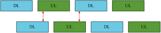 第一种情况:子帧配比(以及时隙配比)相同,但是由于不同步,导致基站A与基站B的下行之间时序错乱,A的下行发射会对B的接收带来干扰,同时B的下行也会对A的接收造成干扰;同理,对于上行也会出现类似现象。