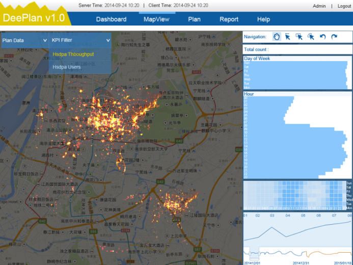 在大数据可视化方面,采用了先进的视觉展示技术以提高用户体验,例如:大数据地理化话务云图渲染、KPI热力图呈现、多维雷达图辅助分析、基于时间窗口滑动操作以及关键数据水晶报表的自动化生成。