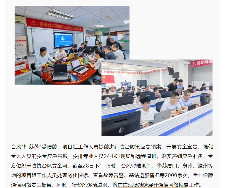 迎“风”出击,无惧风雨,全力做好应急通信保障工作,用实际行动诠释通信企业的责任与担当,
