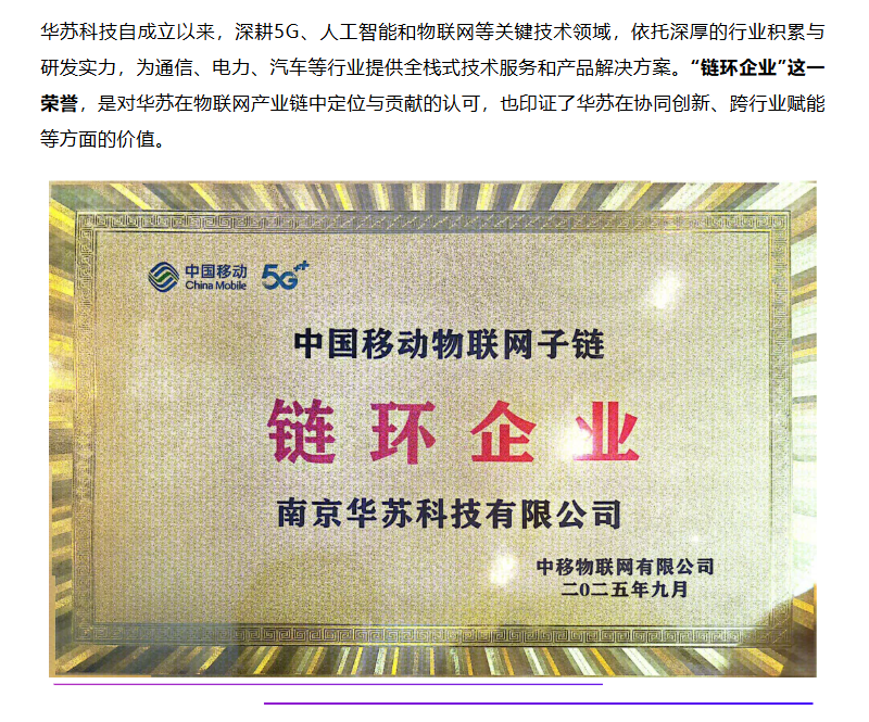 华苏科技成为中移物联网“链环企业”,携手共促AIoT产业融通发展